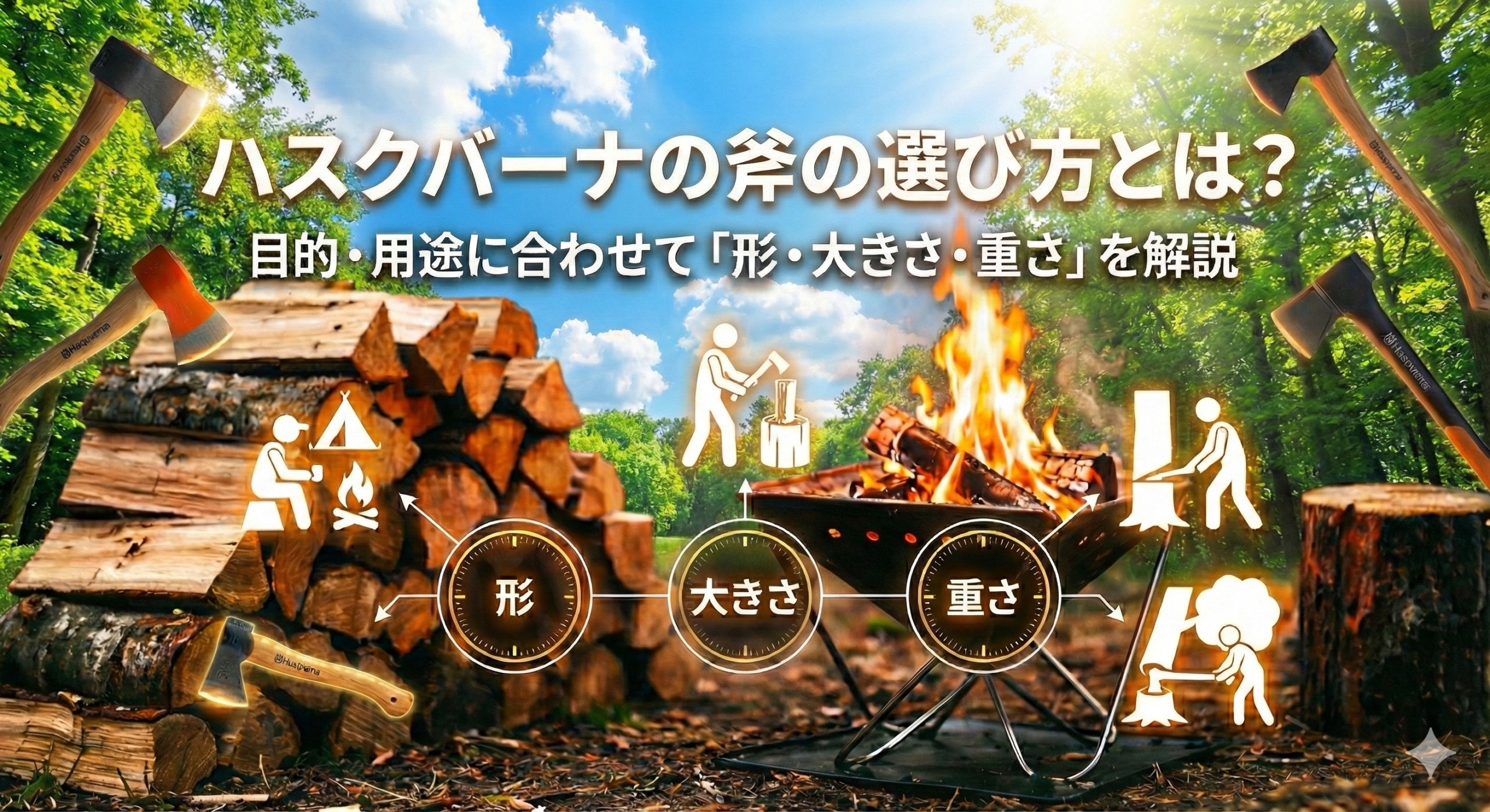 ハスクバーナの斧の選び方とは?目的・用途に合わせて「形・大きさ・重さ」を解説